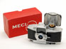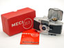 Exemplaire du milieu de production. L'objectif BOYER PARIS 1:2.8 f:45 est à façade couleur métal et ne porte pas de numéro. Cette version est la plus courante des Mécilux qui aurait été produite jusqu'à la fin, le dernier numéro